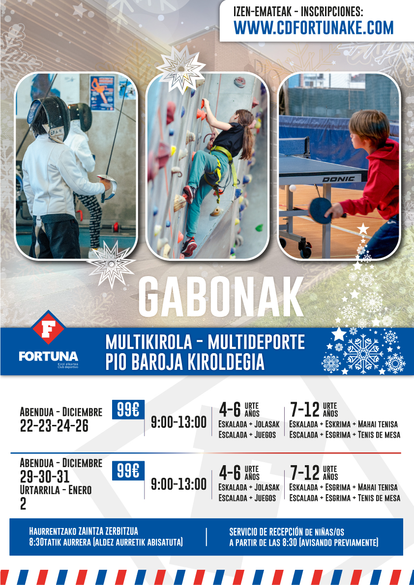 Este año, desde el Club Deportivo Fortuna ofertamos cursos de Multideporte para niñas/os de 4 a 12 años para que en las fiestas navideñas sigan divirtiéndose haciendo deporte.